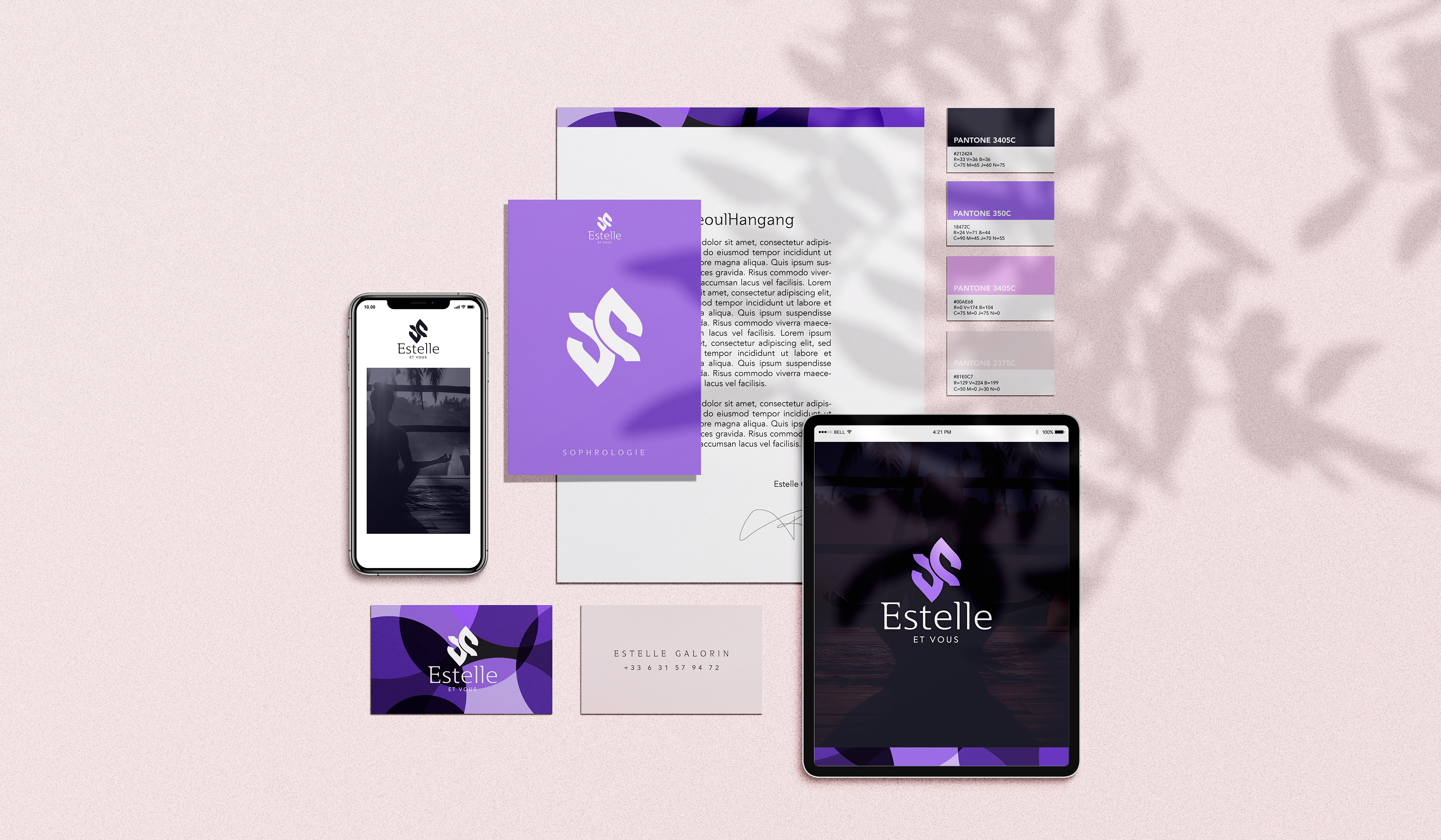 Identité visuelle pour le cabinet de sophrologie Estelle & Vous.